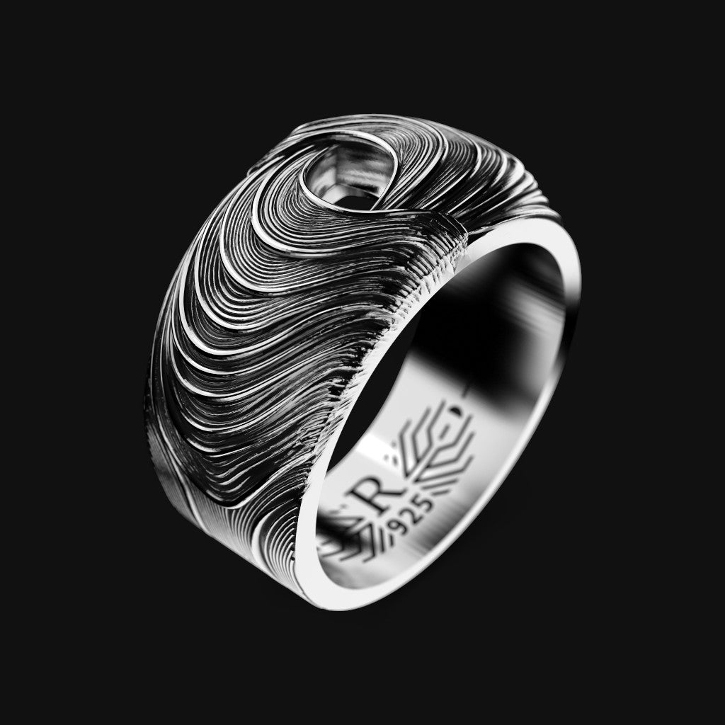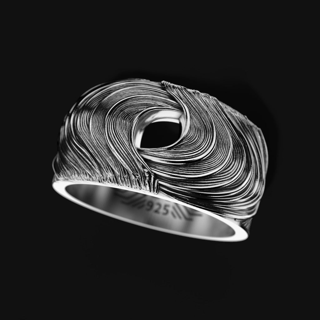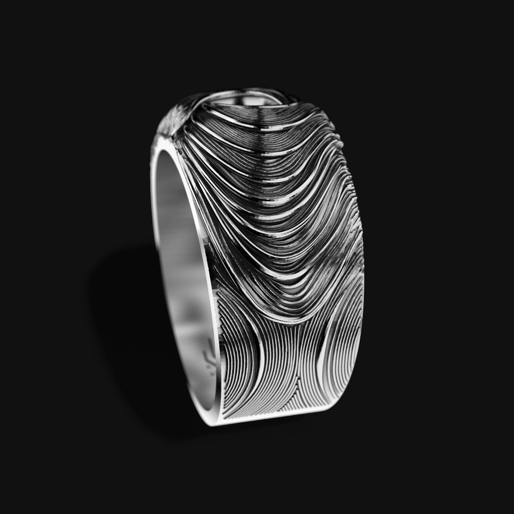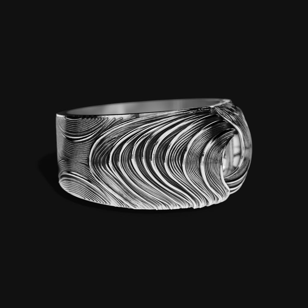 A flowing landscape cast in silver, where lines move like wind-shaped sand. Each curve traces the quiet rhythm of motion and stillness intertwined, holding the memory of shifting dunes and unseen currents. It carries the calm of movement made timeless.